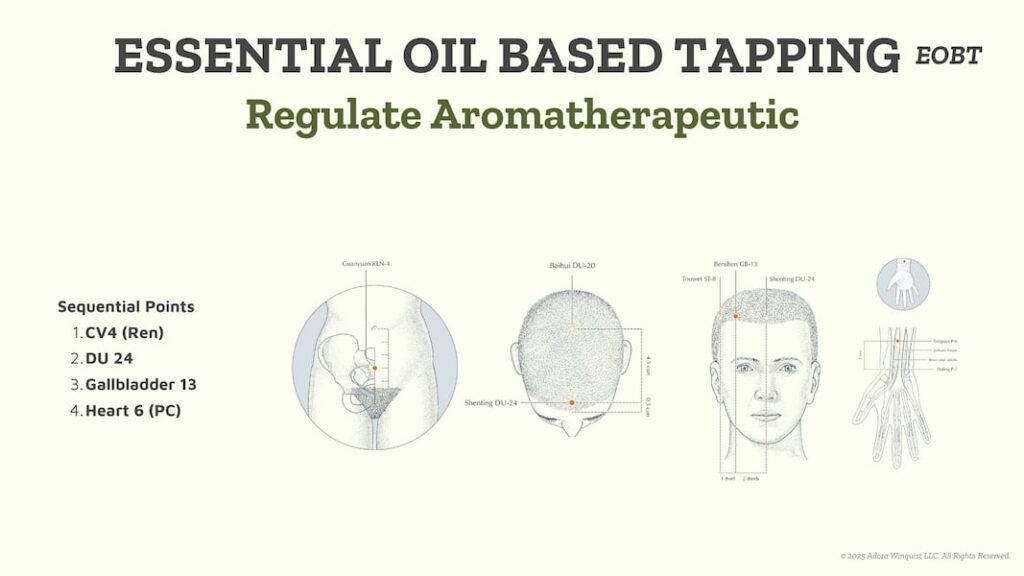 • Add 1 or 2 drops of Regulate oil to the left palm and breathe through the nose for 30-45 seconds with mindful focus on your desired outcome.
